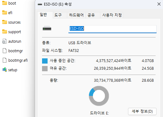따라서 위의 과정은 MS에서 배포함 CD 이미지 파일을 USB에 복사하고 설치 CD 처럼 사용하게 만드는 과정이라고 볼 수 있다.