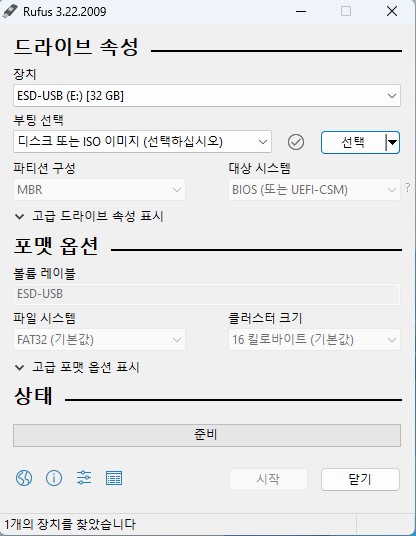 | 방법 2 - Rufus 사용 | 안정적으로 설치 USB 제작 |