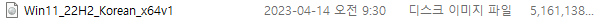 64-bit 다운로드를 누르면 다운로드가 시작된다. 파일 용량은 4.9GB 정도이고, 만약 너무 다운로드 속도가 느릴 경우 위에서 사용했던 윈도우 11 설치 도우미를 이용, "사용할 미디어 선택"에서 ISO 파일을 선택해 다운로드할 수도 있다.