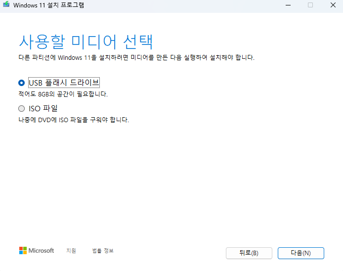 MicroSoft에서 제공하는 설치 미디어 만들기 프로그램을 사용해서 Windows 11의 설치 조건을 만족하는 컴퓨터에 윈도우 설치가 가능한 USB를 가장 간단하게 만드는 방법을 소개한다.