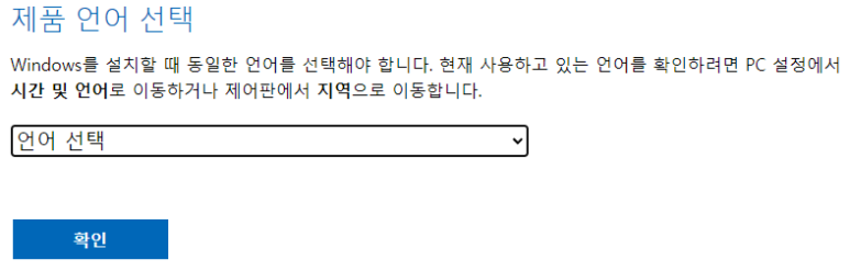 제품 언어 선택을 한국어로 하고 확인을 누른다.