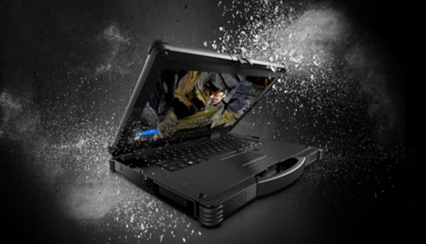 현장 작업자를 위한 러기드(Rugged:험준한, 기복이 심한) 노트북으로 분진이 날리는 환경에서도 사용 가능하며 방수성과 내구성, 충격 보호를 강화한 제품.