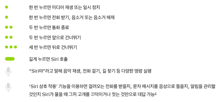 | 에어팟 4 배터리 | 음향 청취 5시간 음성 통화 4.5시간 |