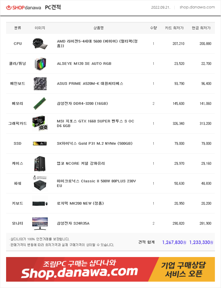 일단 나는 이걸로 견적을 짜고, 부품을 따로따로 구매해서 집에 배송 시켜서 조립할 예정이다.