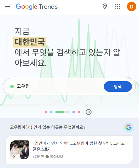 키워드에 대한 관심도의 지역별 시각화를 제공하며, 실시간 인기 검색어 확인이 가능하다. 이를 활용해 블로그 콘텐츠의 주제 선정 및 특정 지역을 타겟한 마케팅 용도로 활용할 수 있다.