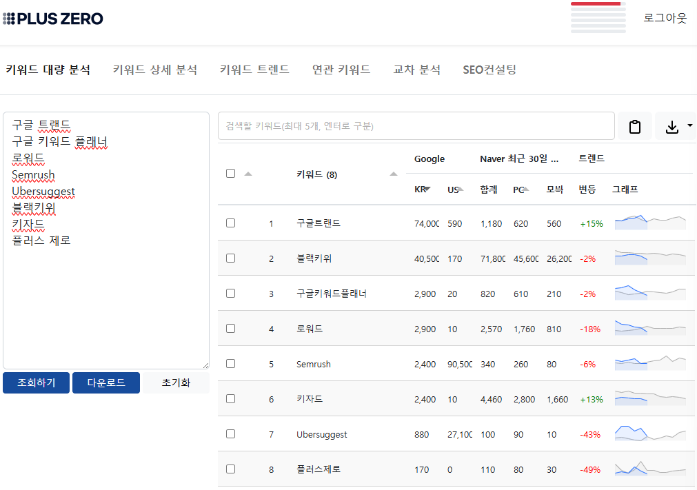 | 플러스 제로 | 네이버 / 구글 키워드 검색량 조회 | 무료 |