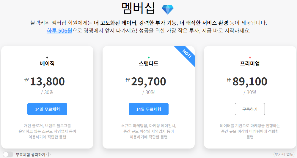 | 블랙키위 | 주로 네이버에 쓰나 구글도 확인 가능 | 월 13,800원 (기본 플랜) |