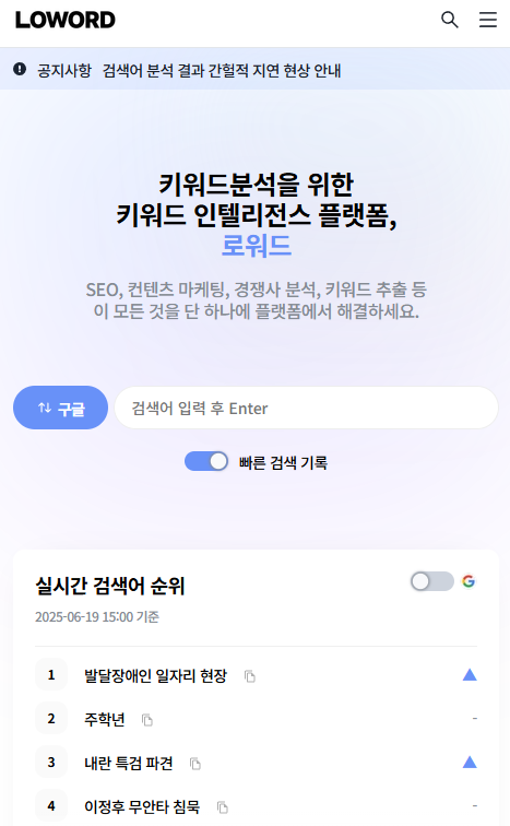 워드프레스 부업 유튜버 로알남(로직알려주는남자)이 만든 구글 키워드 검색량 측정 사이트.