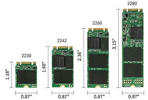 또한 이런 M.2 방식의 SSD는 2230 / 2242 / 2260 / 2280의 규격이 있는데 이는 SSD의 크기를 의미한다. 별도로 사양표에 적혀있지 않으면 2280 까지 지원하고, 설계상 작은 사이즈만 추가할 수 있으면 따로 표기한다. 구매 전에 한번 확인해 두는 편이 좋다.