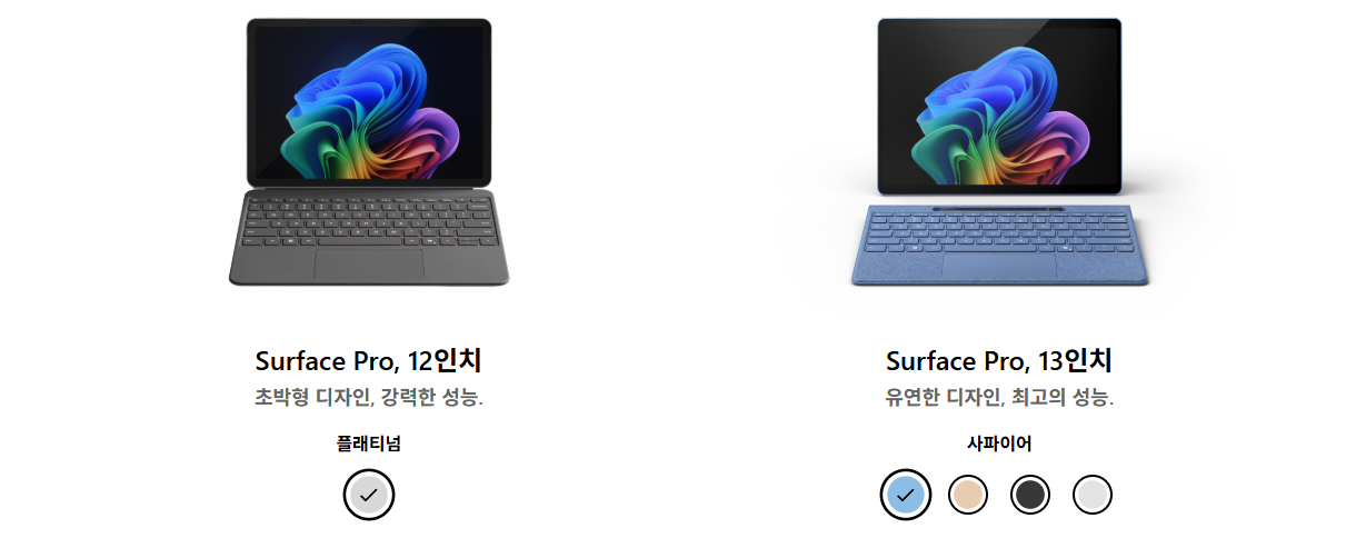 | 서피스 프로 11 12인치 (2025) | 13인치 대비 23% 가볍고 성능 옵션을 약간 낮춘 서피스 |