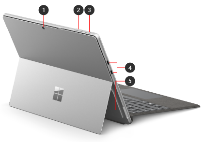 포트 구성은 위와 같이 C 타입 포트 두 개와 충전과 서피스 독 연결을 지원하는 서피스 포트로 총 3개. 이외에 양면에 카메라가 하나씩 있으며 듀얼 마이크가 전면에 있으며 상부에 볼륨, 전원 버튼이 위치한다.