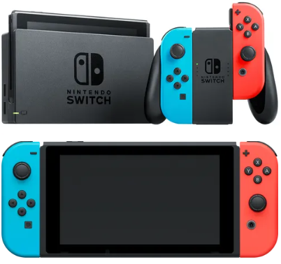 기본적으로 휴대용 게임기이나, TV 등에 연결해 콘솔 게임기 처럼 사용할 수 있는 스위치의 최신 버전. 이전 스위치 보다 기기 사양이 오르고 휴대 화면 해상도도 높아졌다.